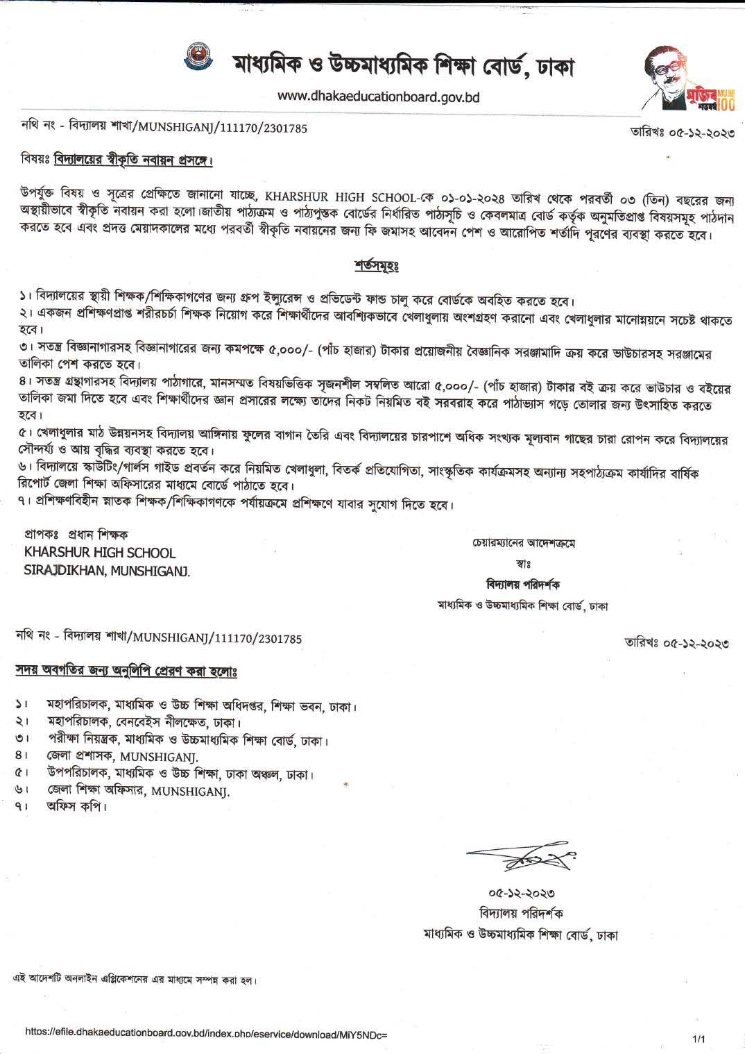 পাঠদানের অনুমতি ও স্বীকৃতি